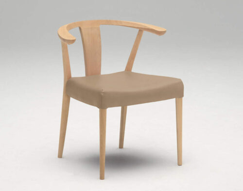 立ち居に邪魔になりにくい肘掛けや座り心地も配慮しつつ、軽量化で、シートはカバーリングタイプの布張の椅子を選択します。