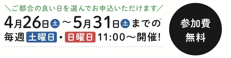 各日先着5組様限定。ご都合の良い日をお選びください。